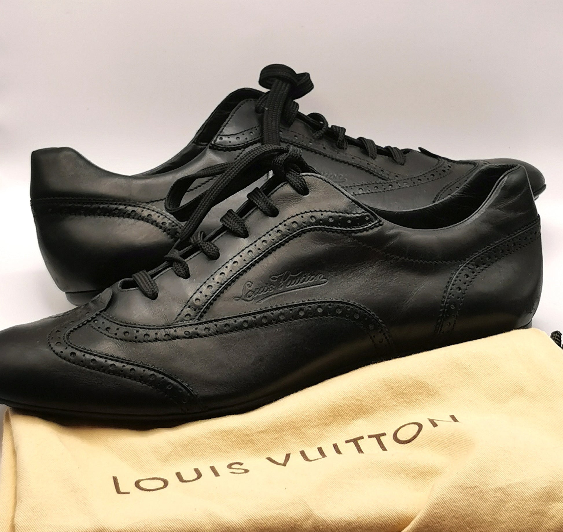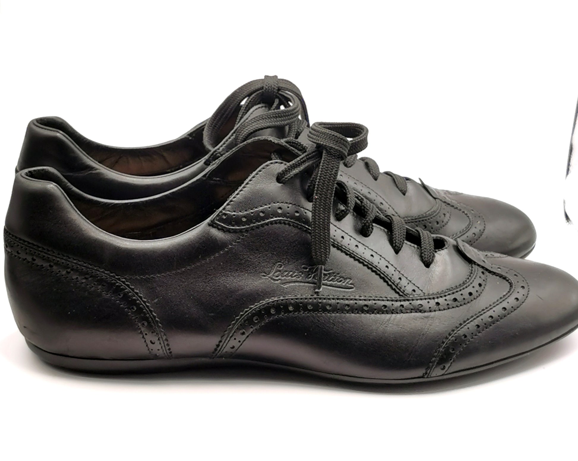 These are the perfect blend of comfort and style with a smart black leather brogue style with Louis Vuitton embossed logo and punch out detailing.