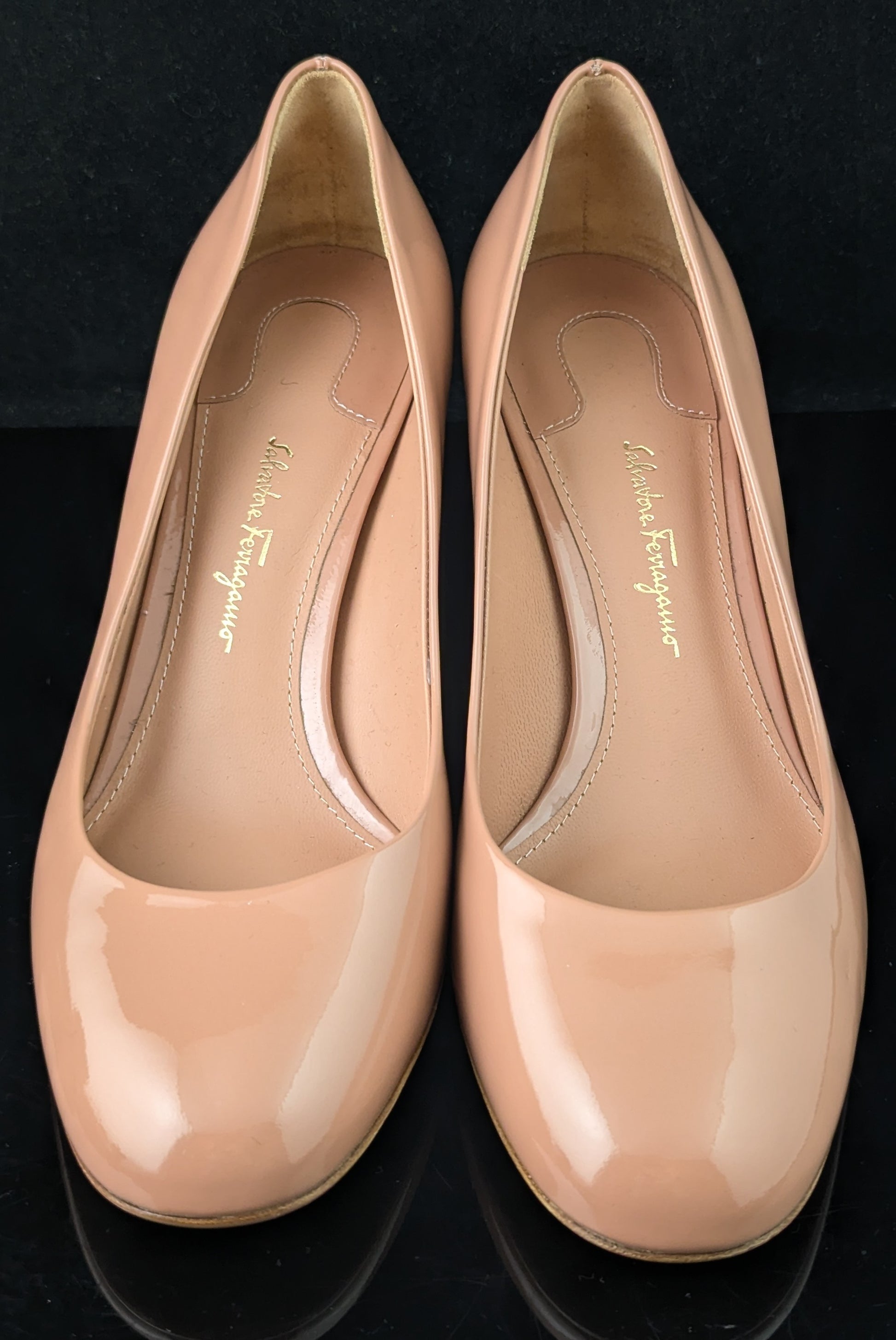 Salvatore Ferragamo blush pink patent leather heeled pumps, shoes