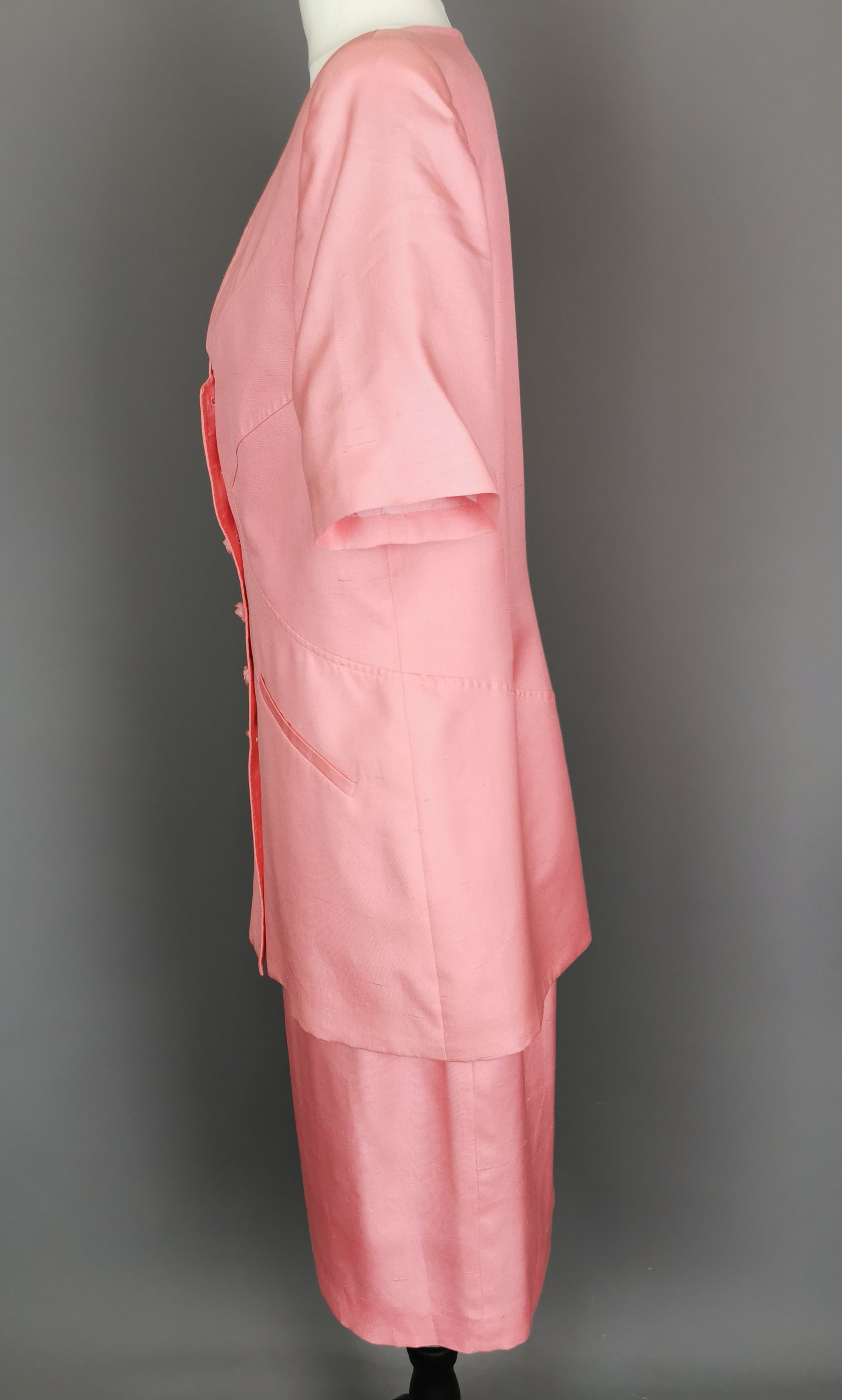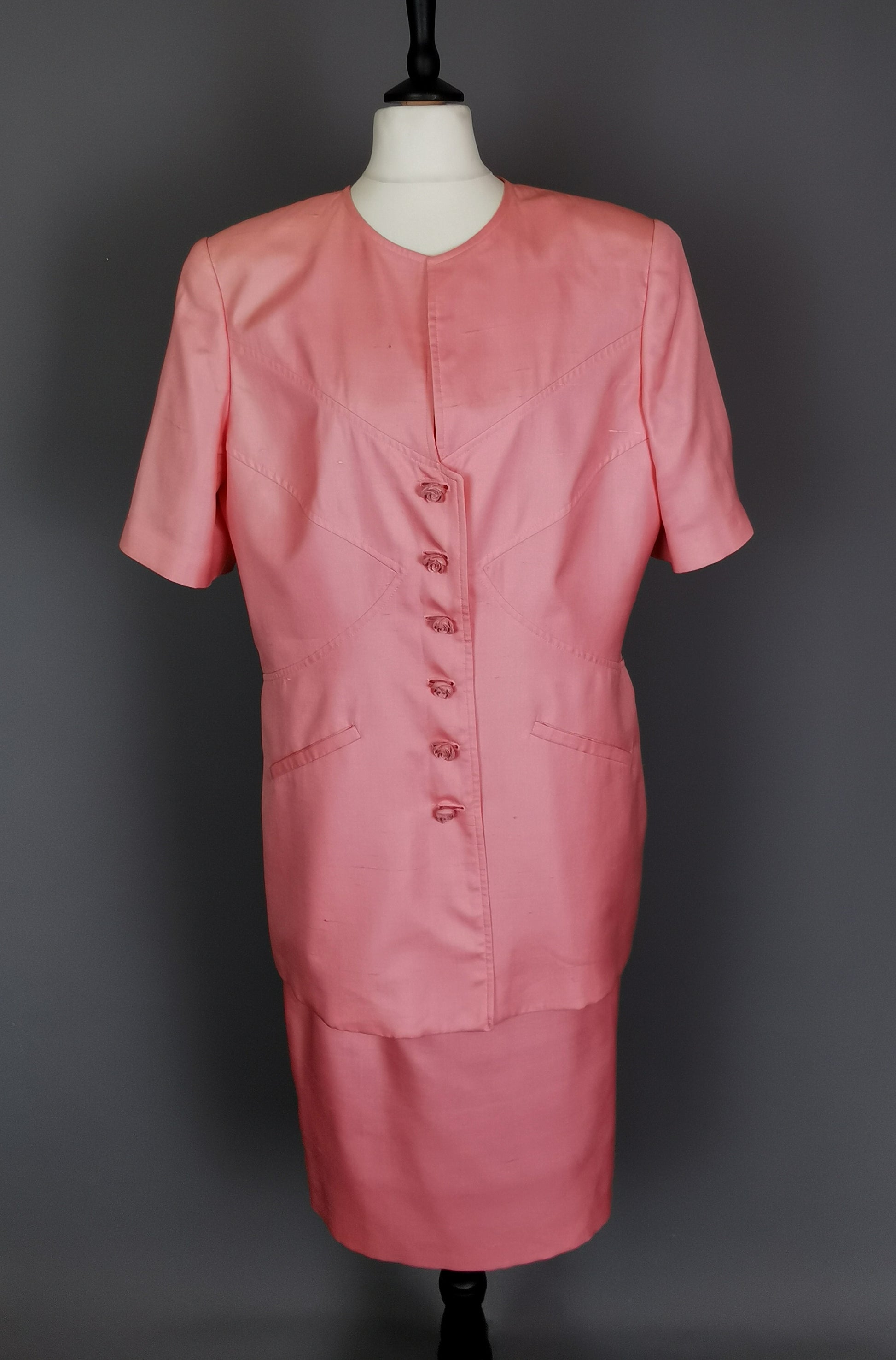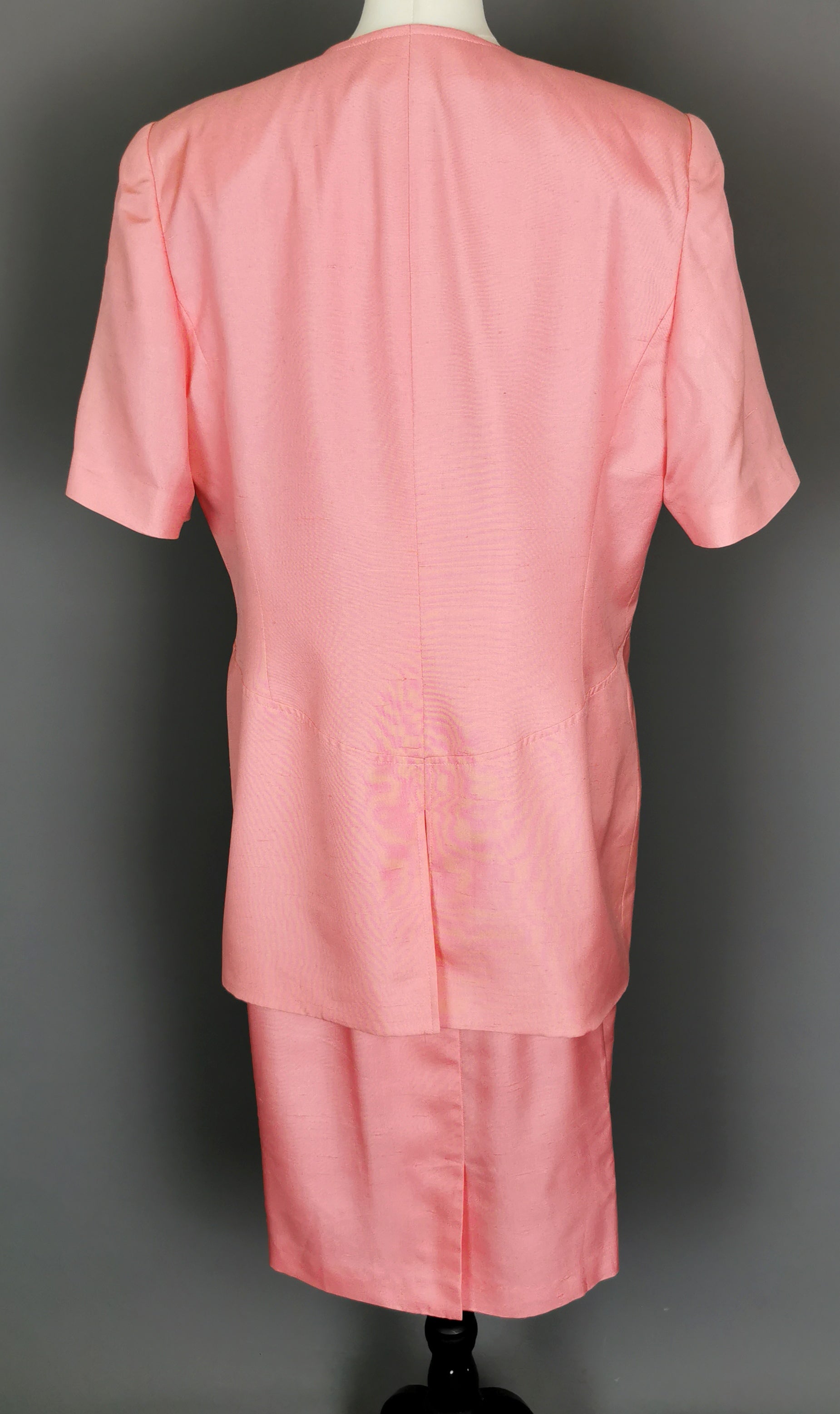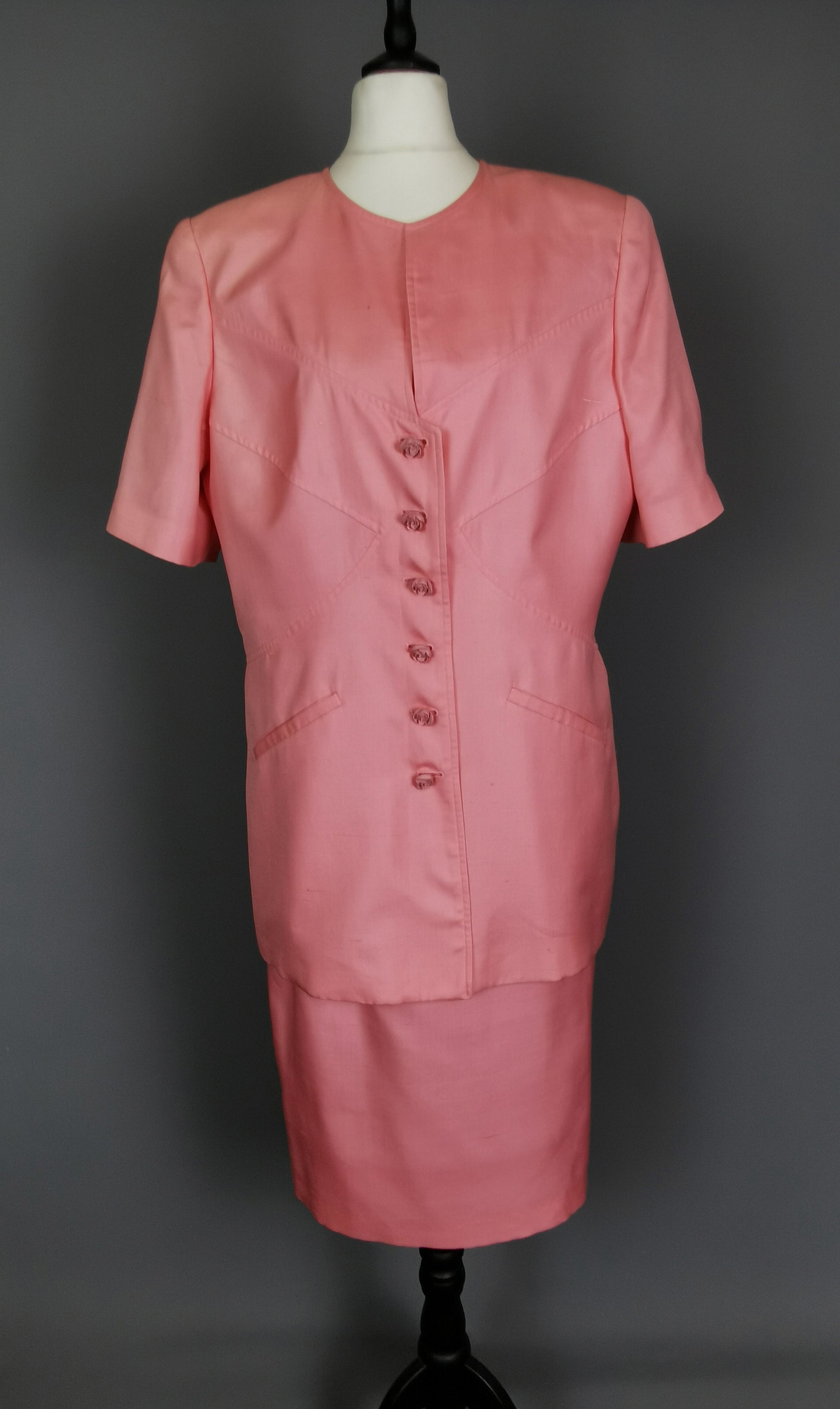 Vintage 80s Valentino pink silk skirt suit
