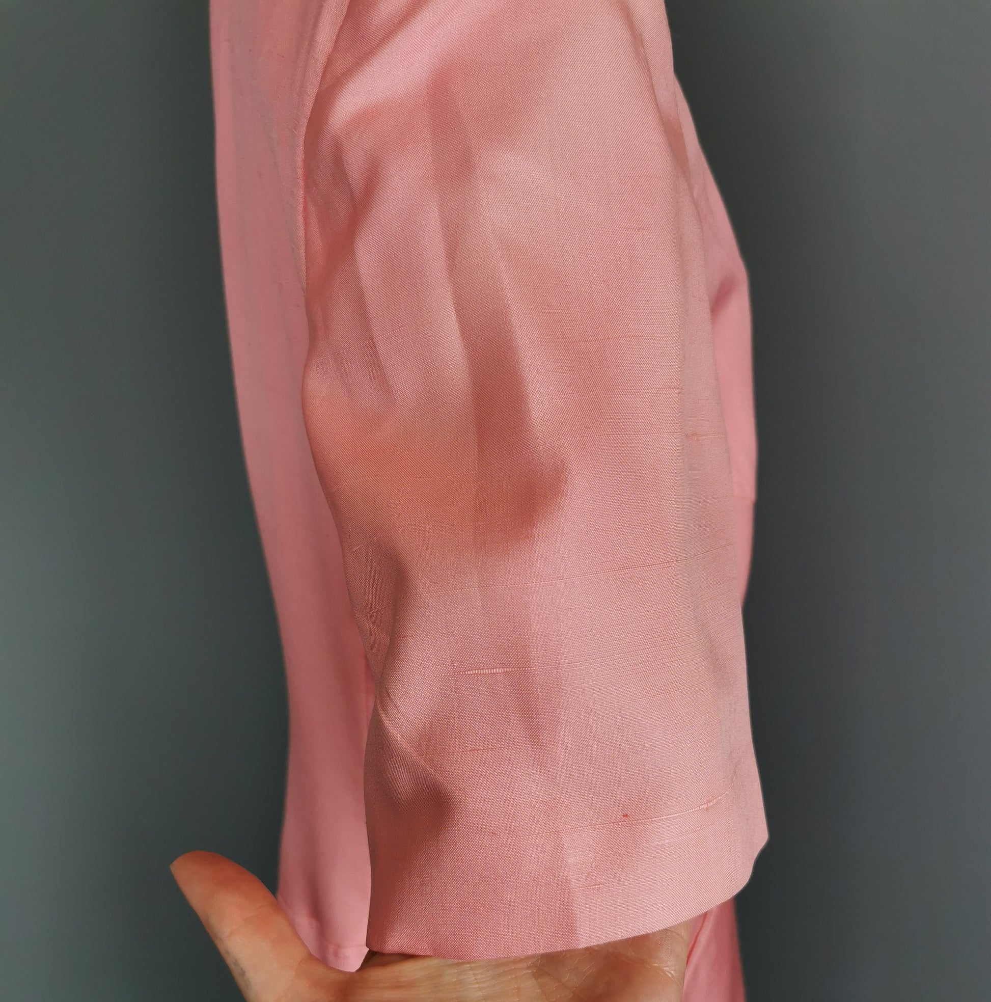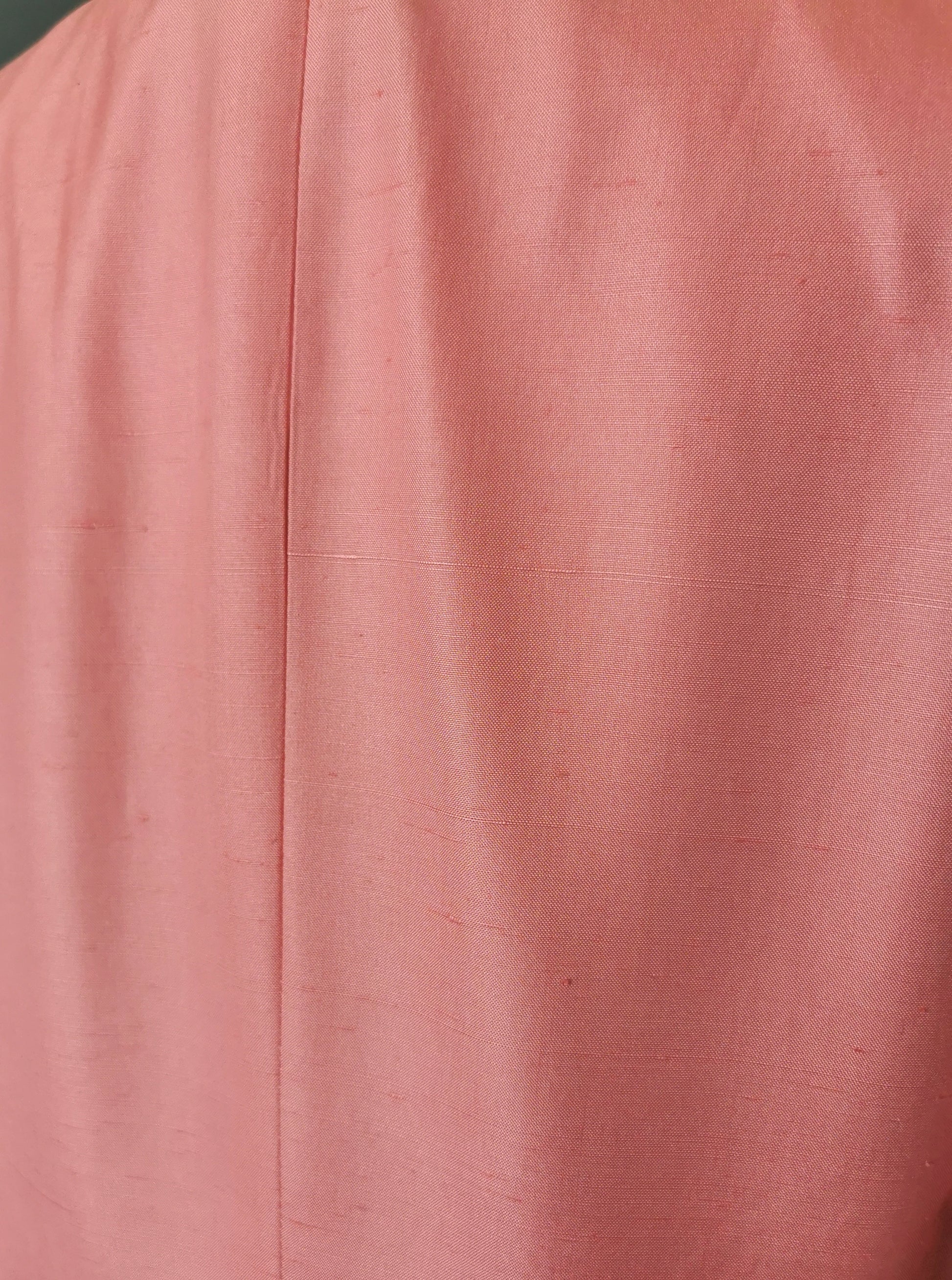 Lined with an acetate lining, it has a slight texture to the silk, dry clean only.