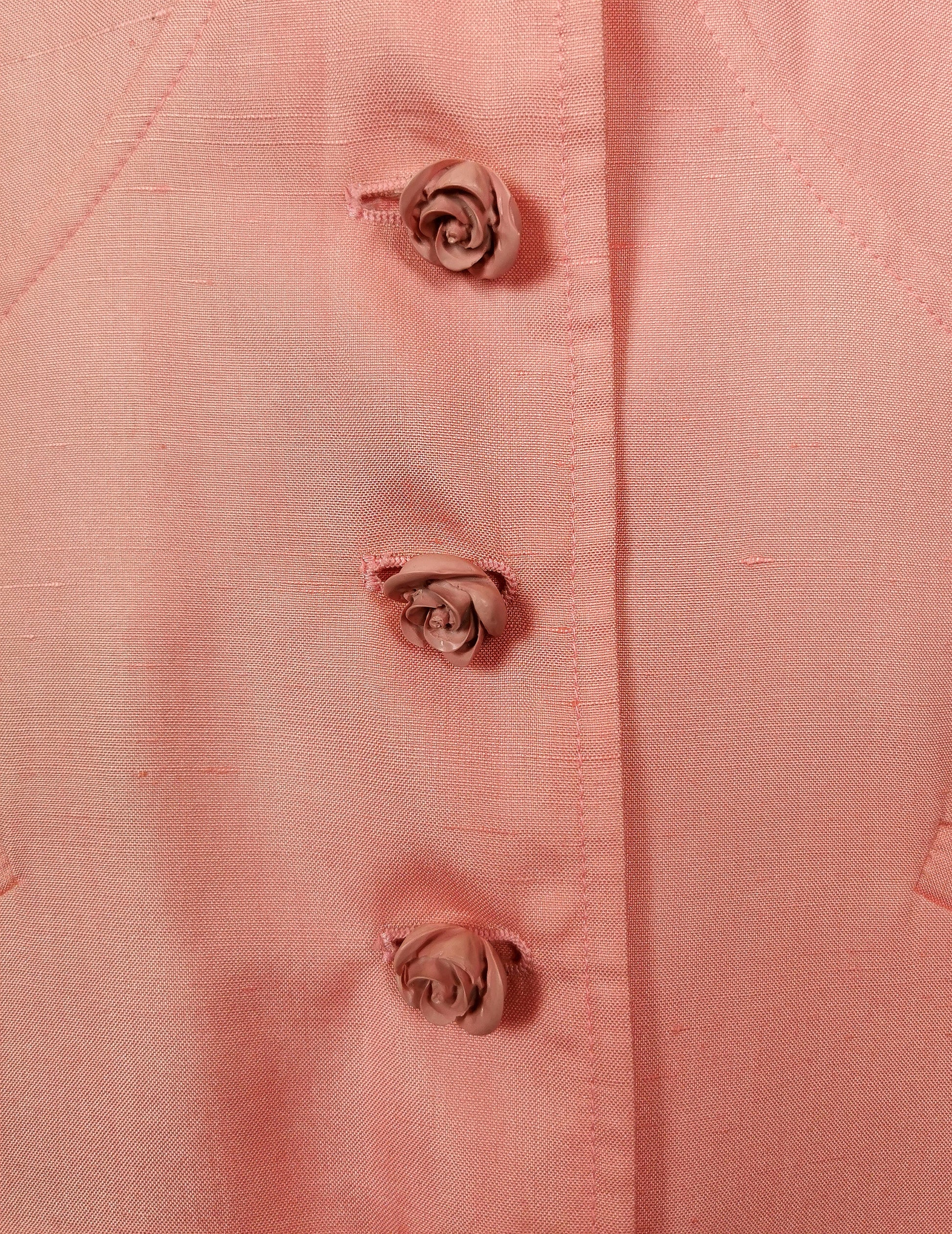 This is the ultimate in feminine power dressing with the large boxy, padded shoulders contrasting with the pretty Rose stylised buttons.