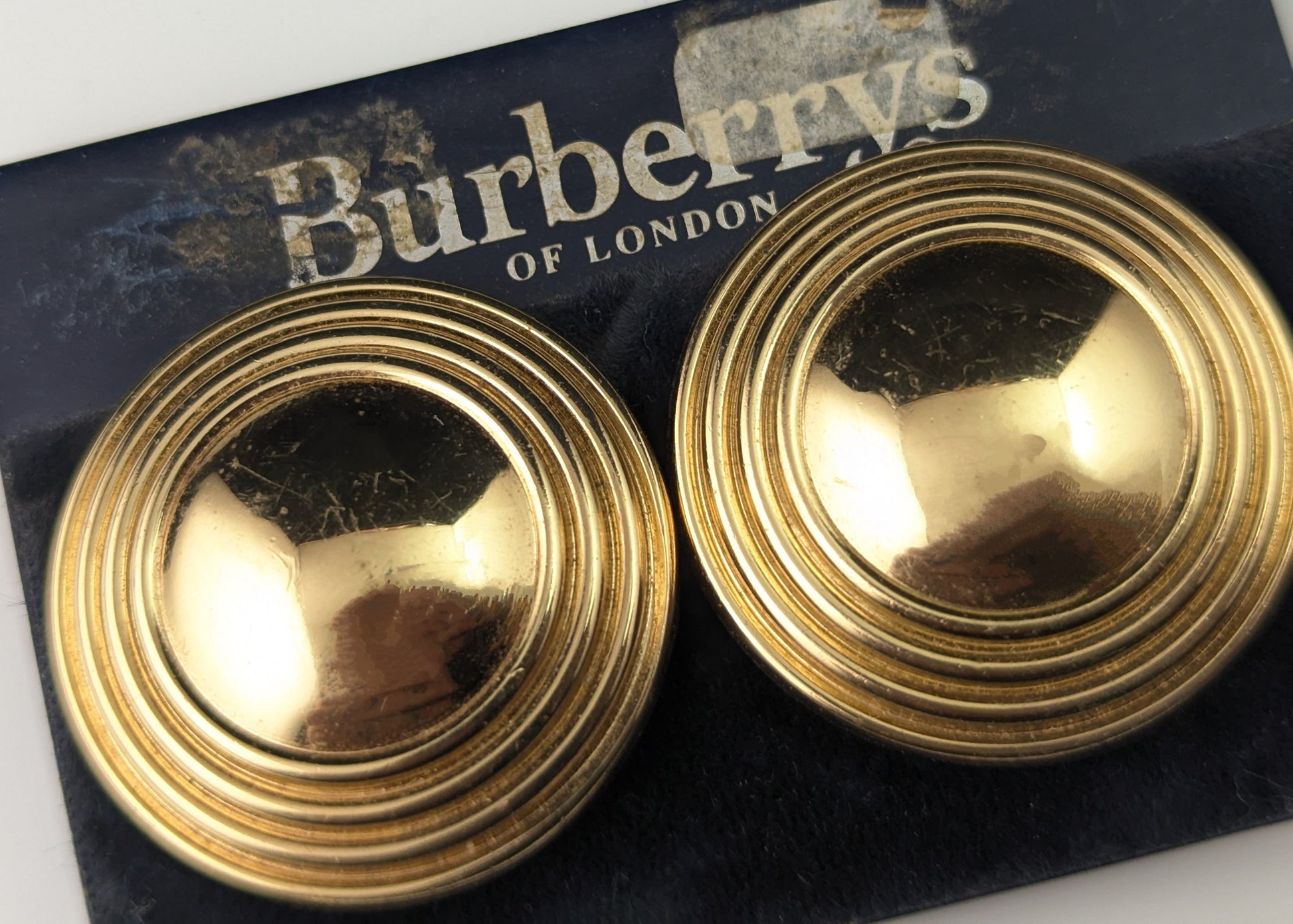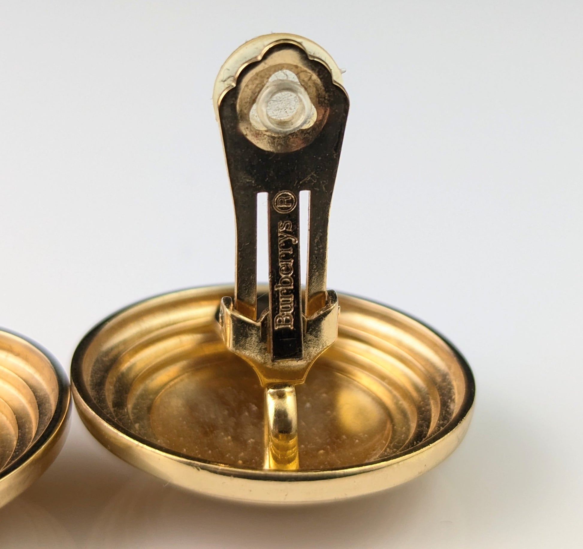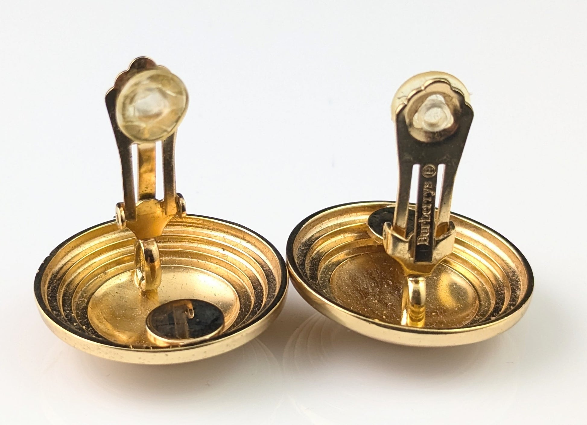 A fantastic pair of vintage Burberry gold tone clip on earrings.