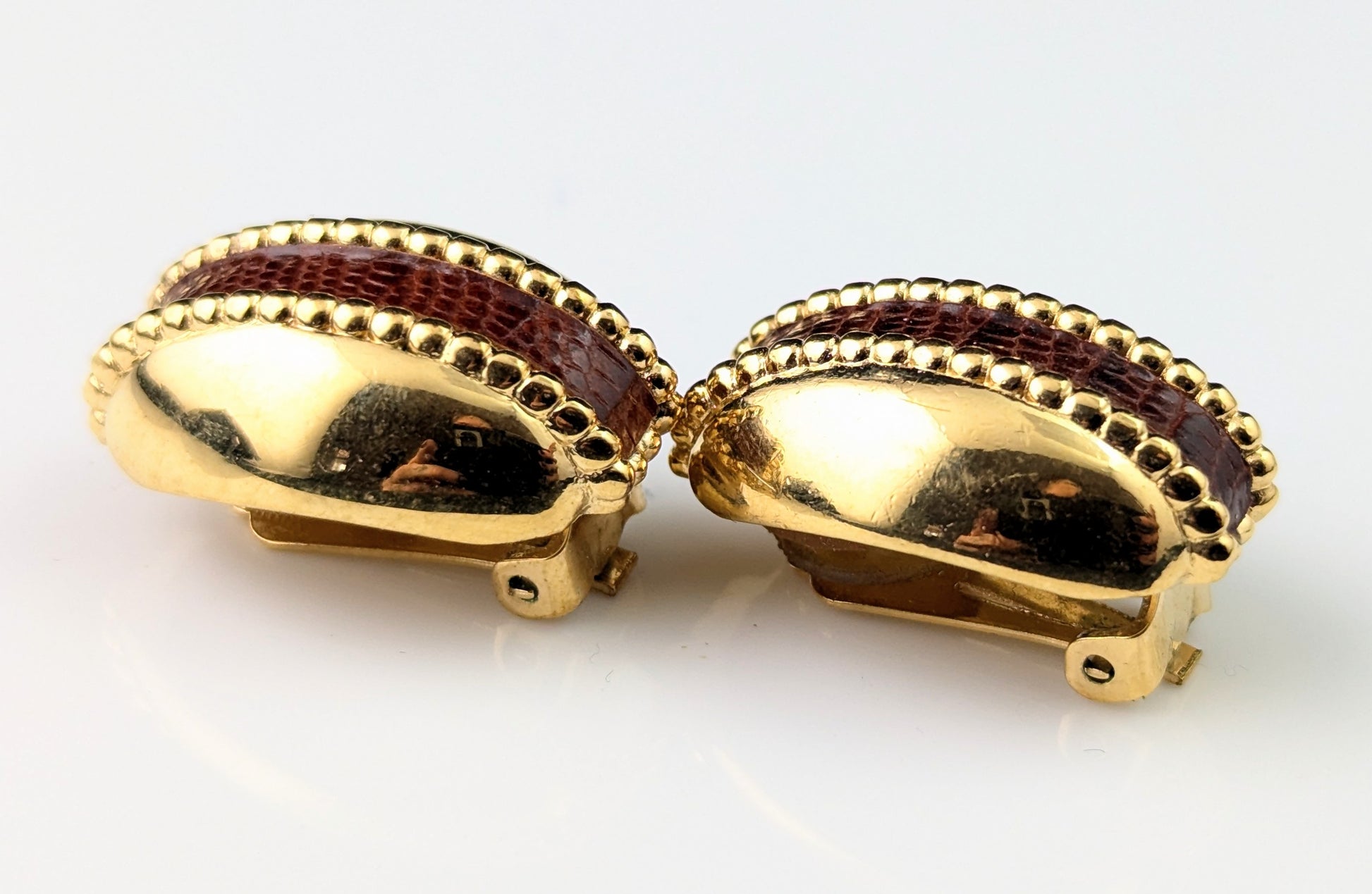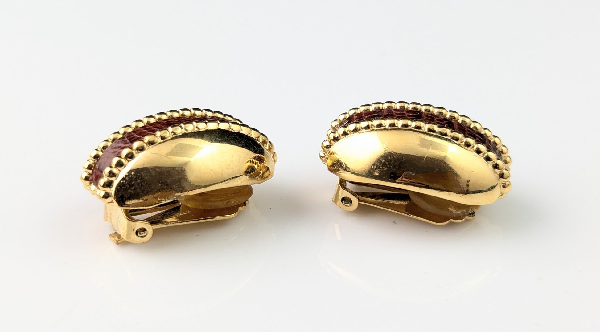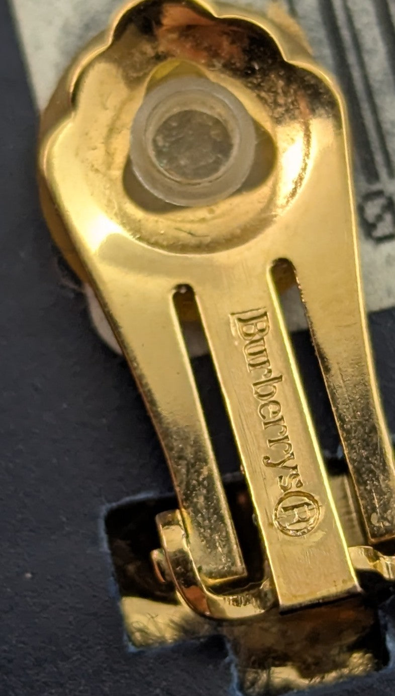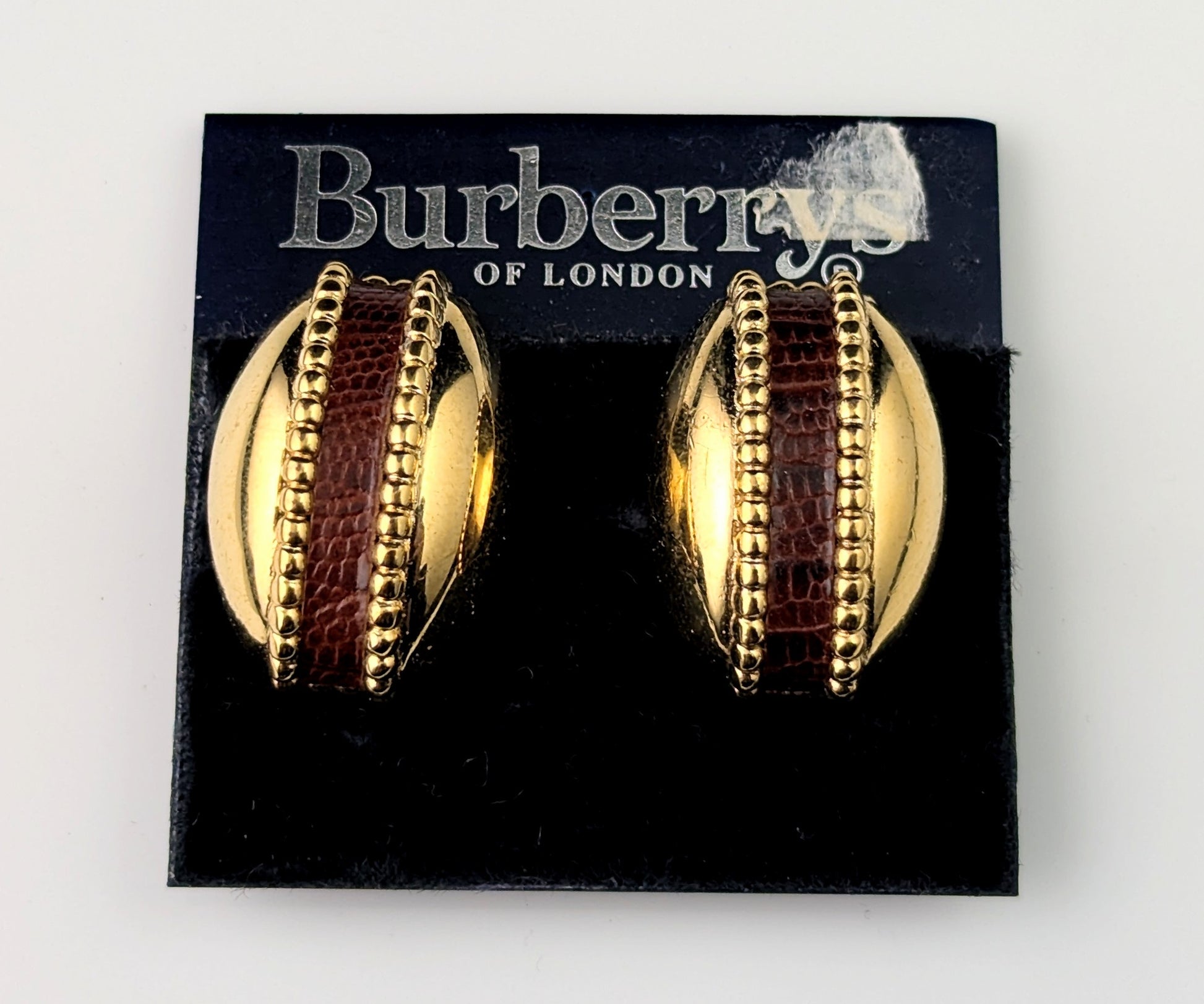 Vintage Burberry clip on earrings, Gold tone and Faux leather