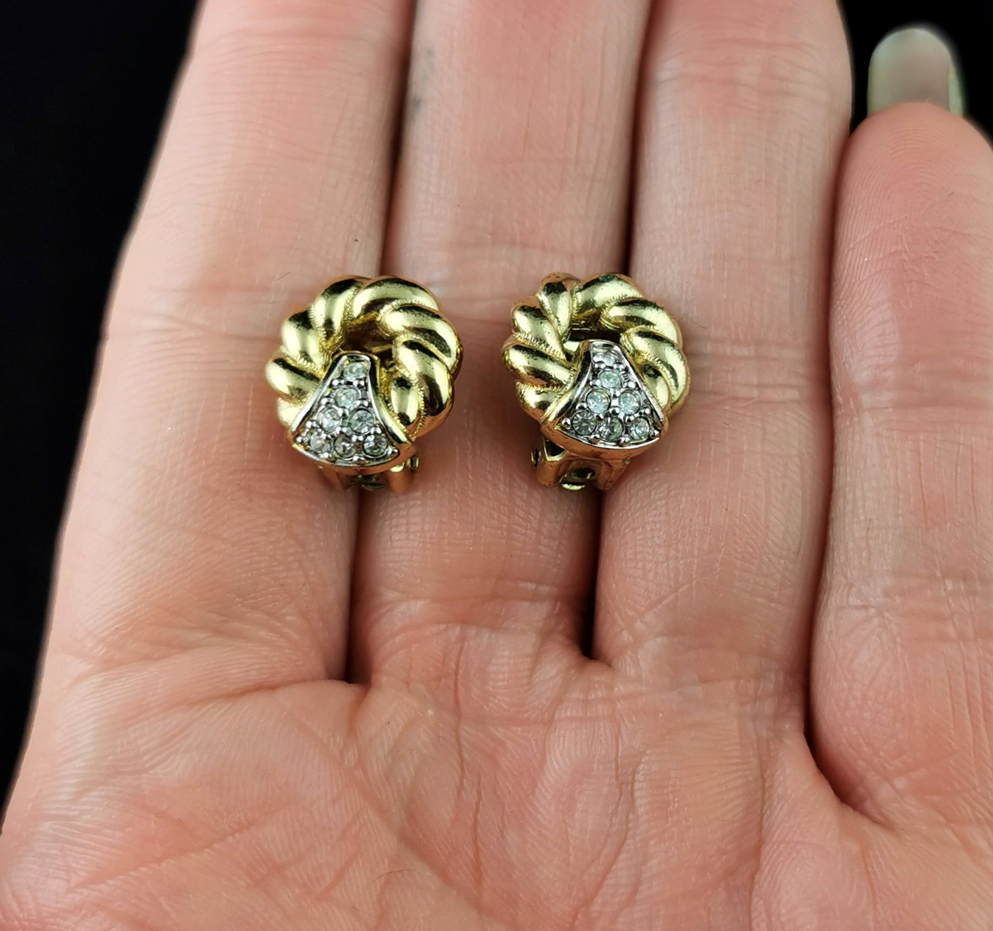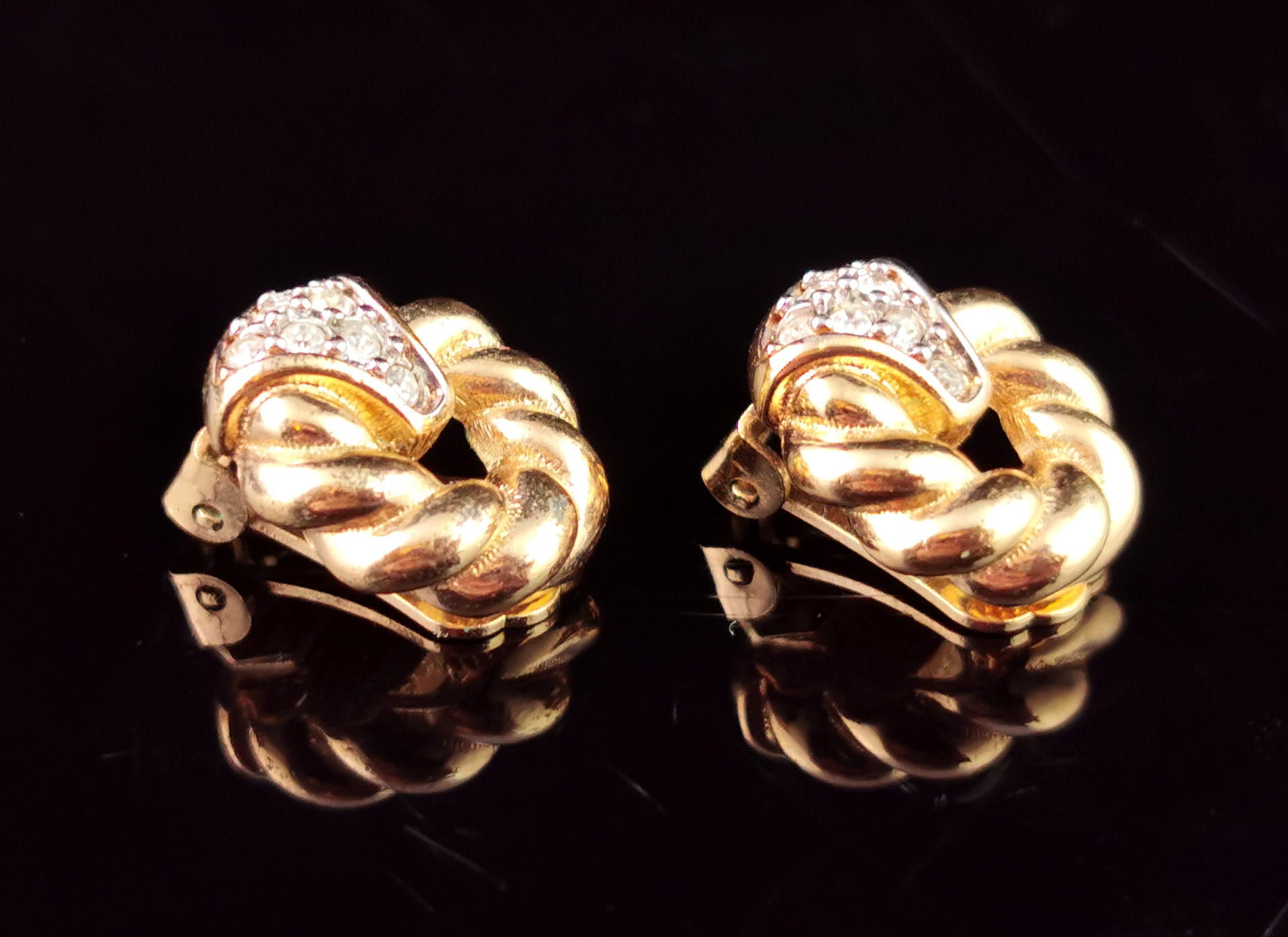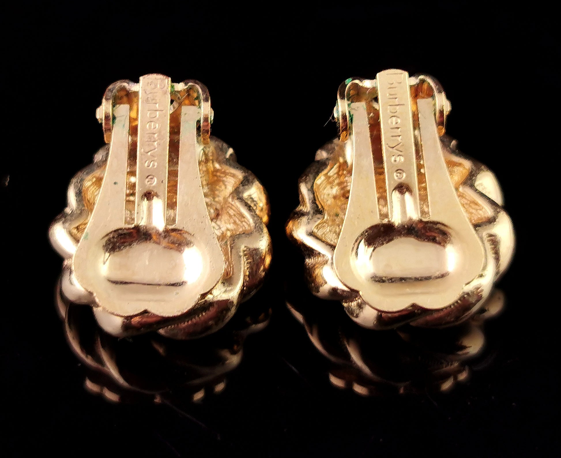 Vintage Burberry clip on earrings, Gold tone, Diamante