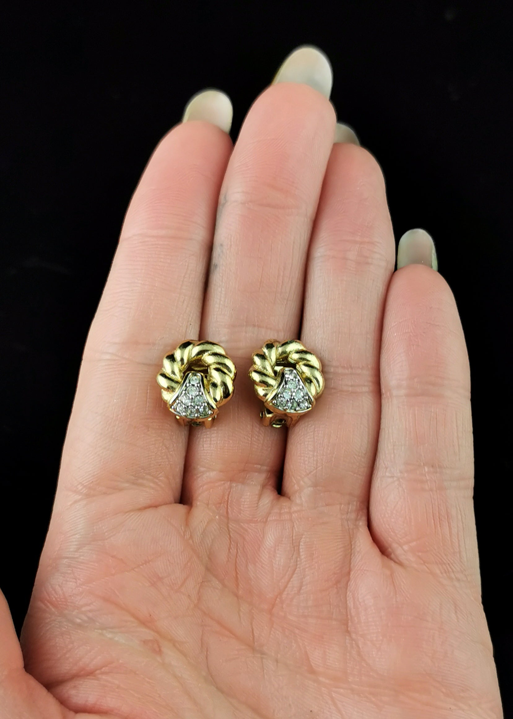 A smaller pair of clip on earrings they have an oval shape with a twist design in rich gold tone metal.