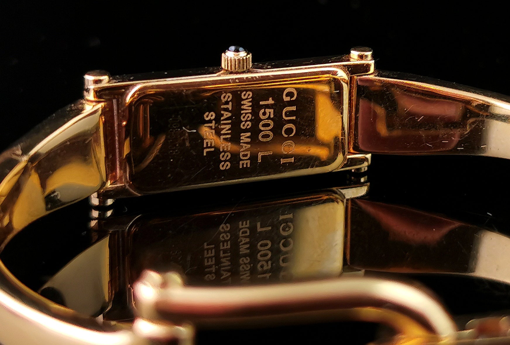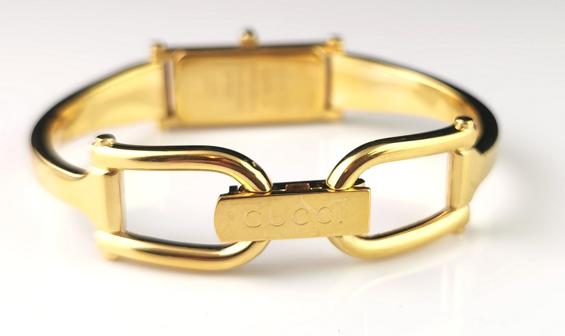 Vintage Gucci 1500l gold plated ladies wristwatch, Horsebit bangle strap