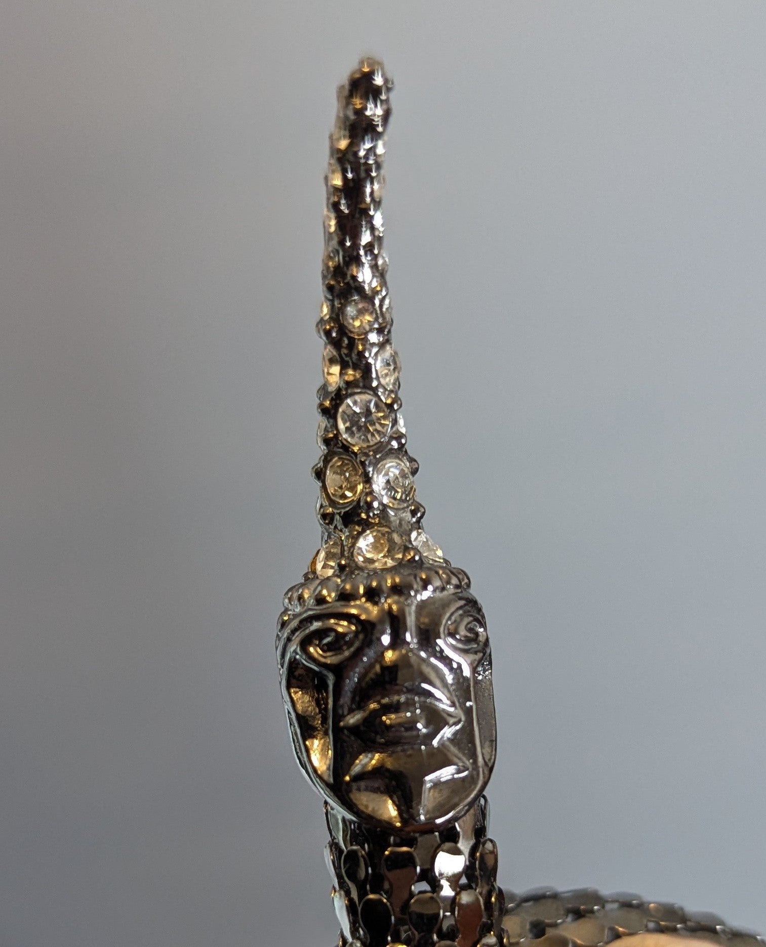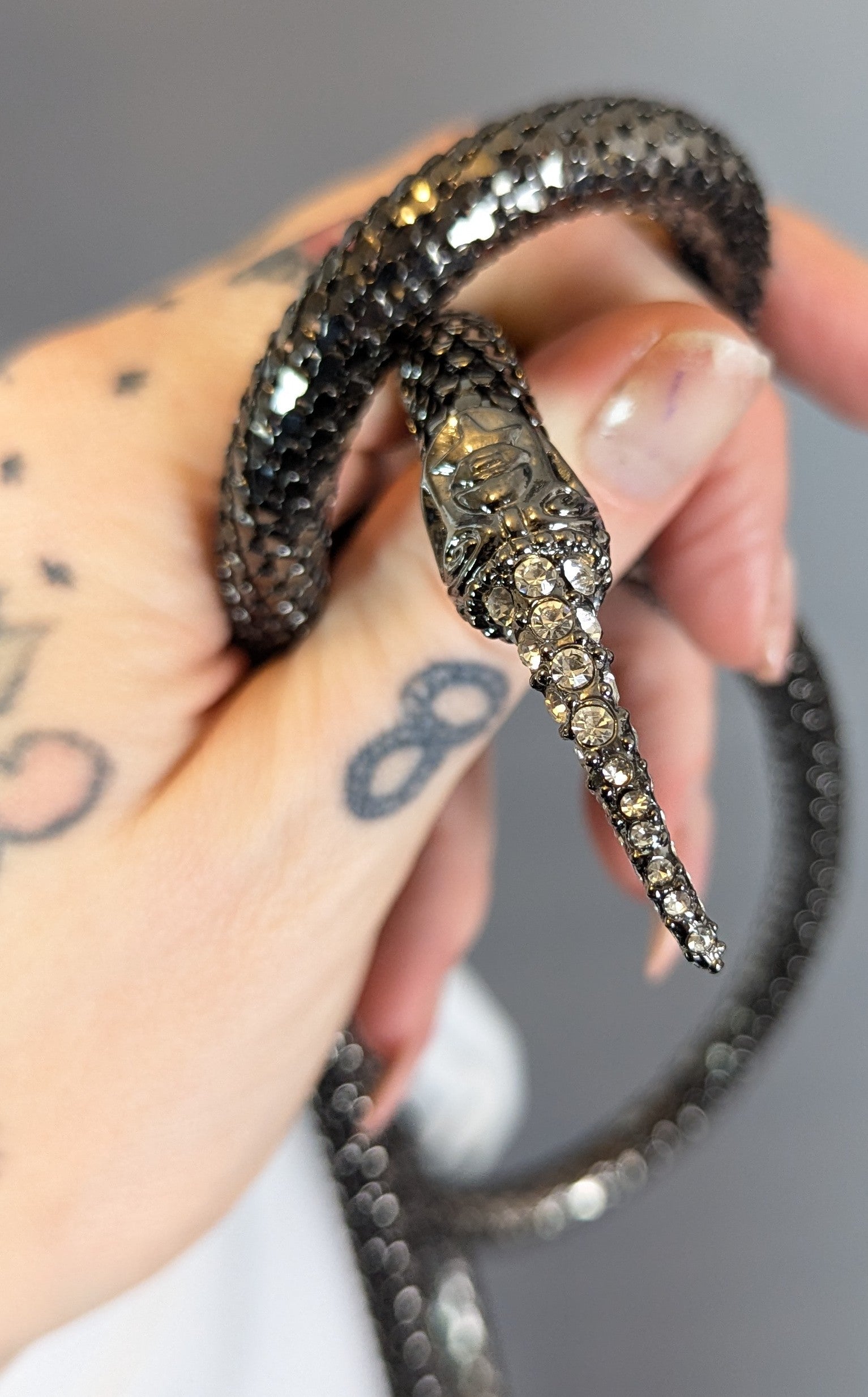 The head is designed as a snakes head complete with forked tongue and both the head and the tail are studded with diamanté stones for a little extra sparkle.