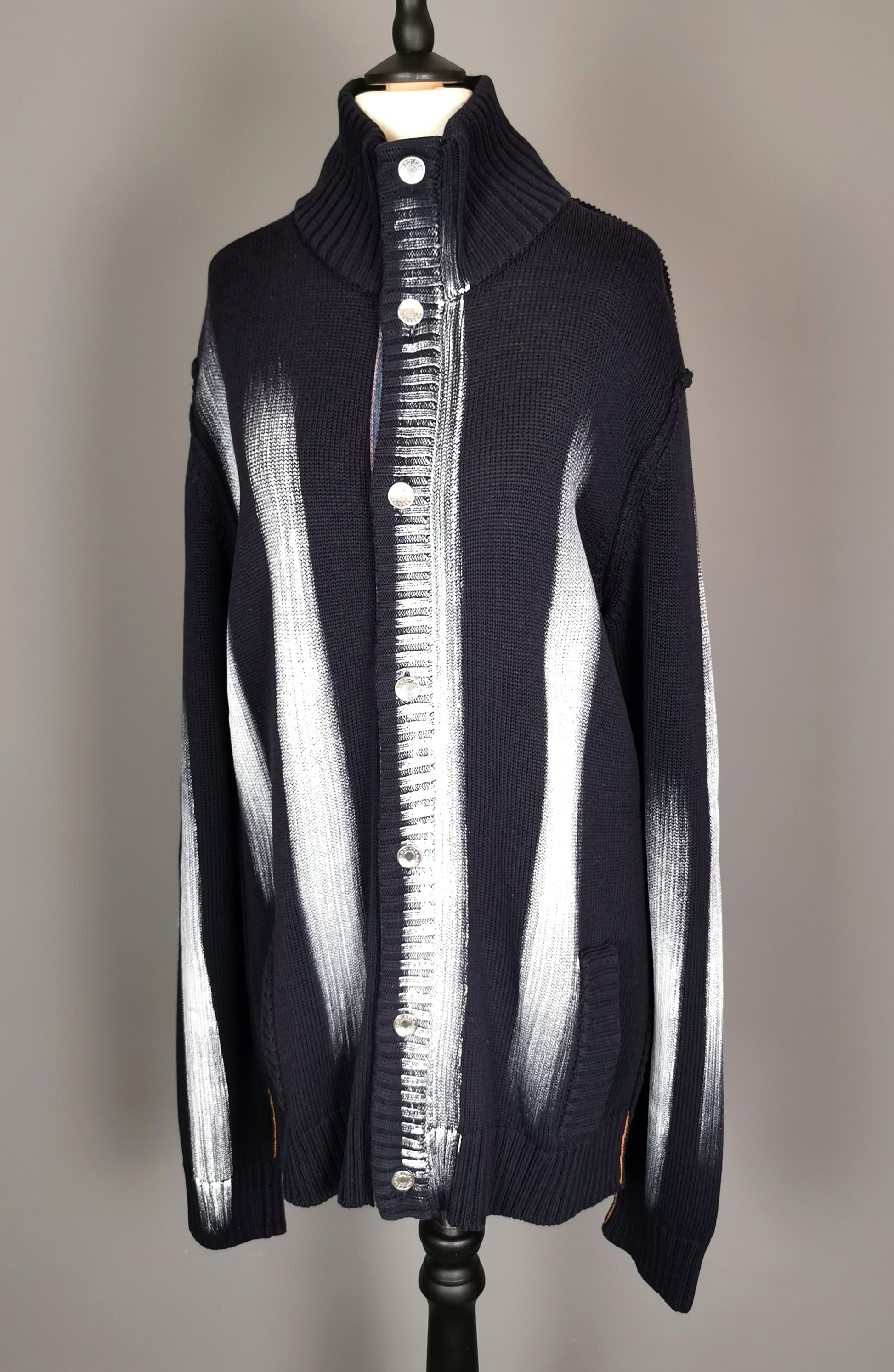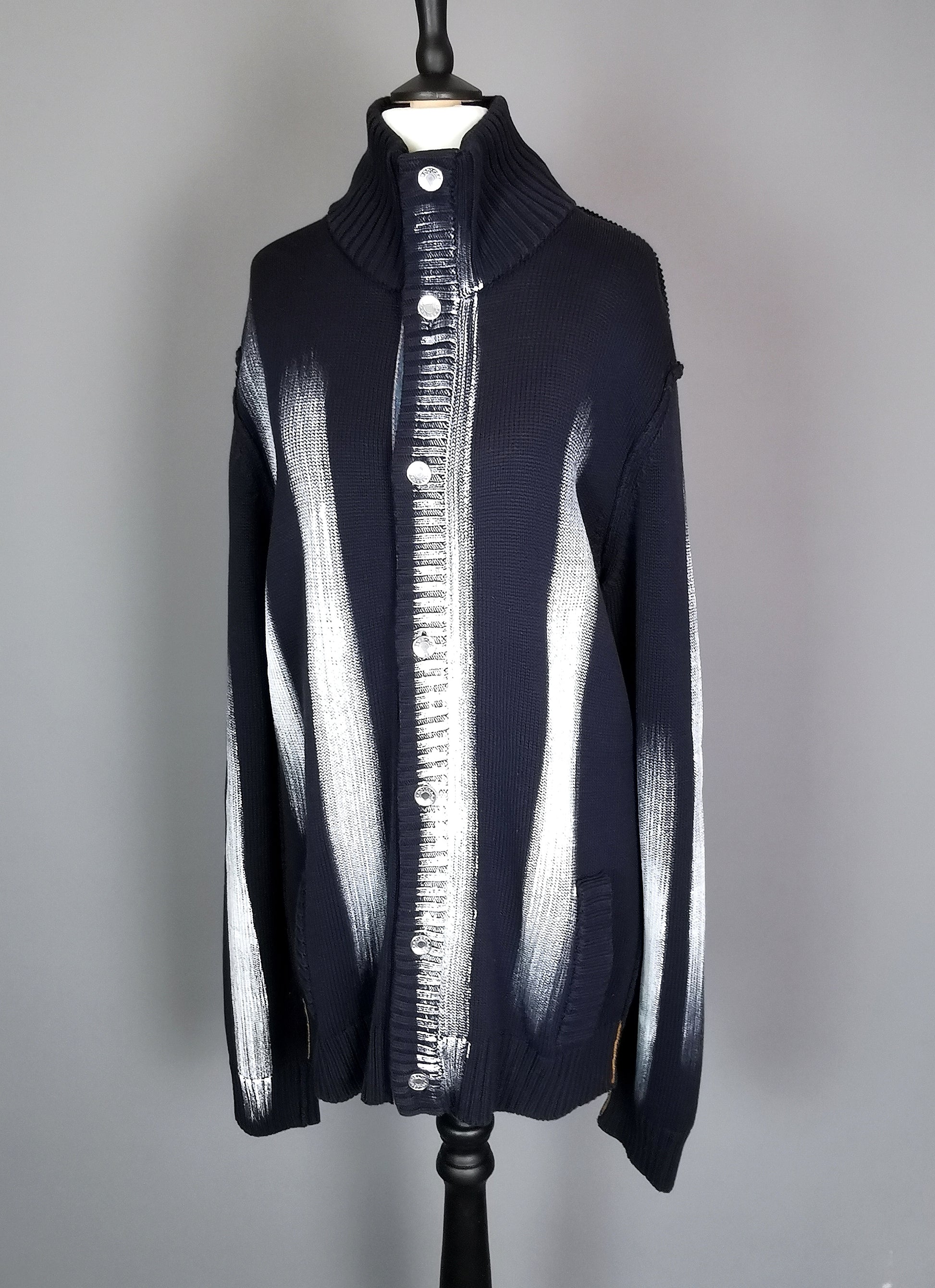 A rare vintage mens Dolce and Gabbana paint stripe cardigan.
