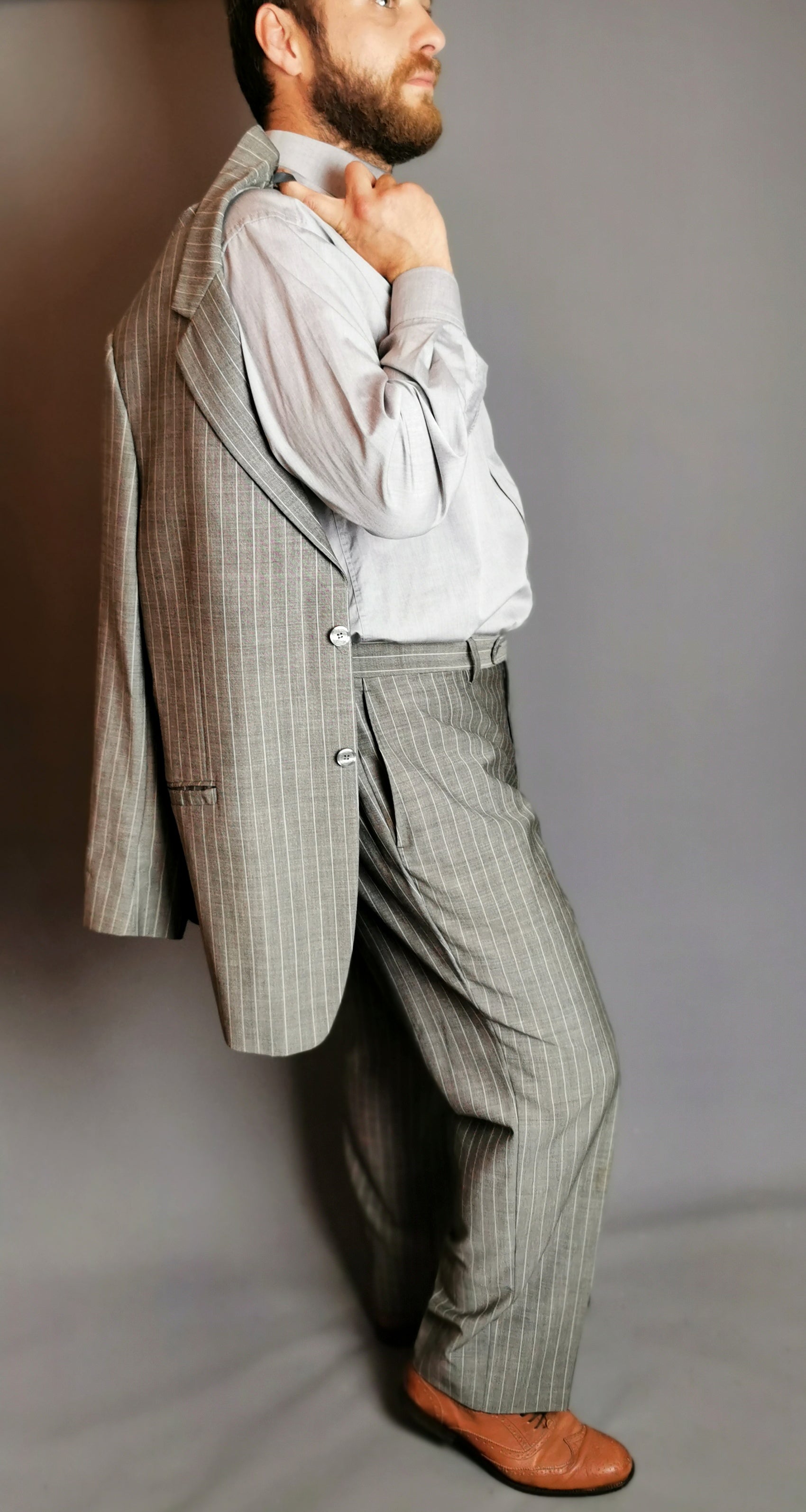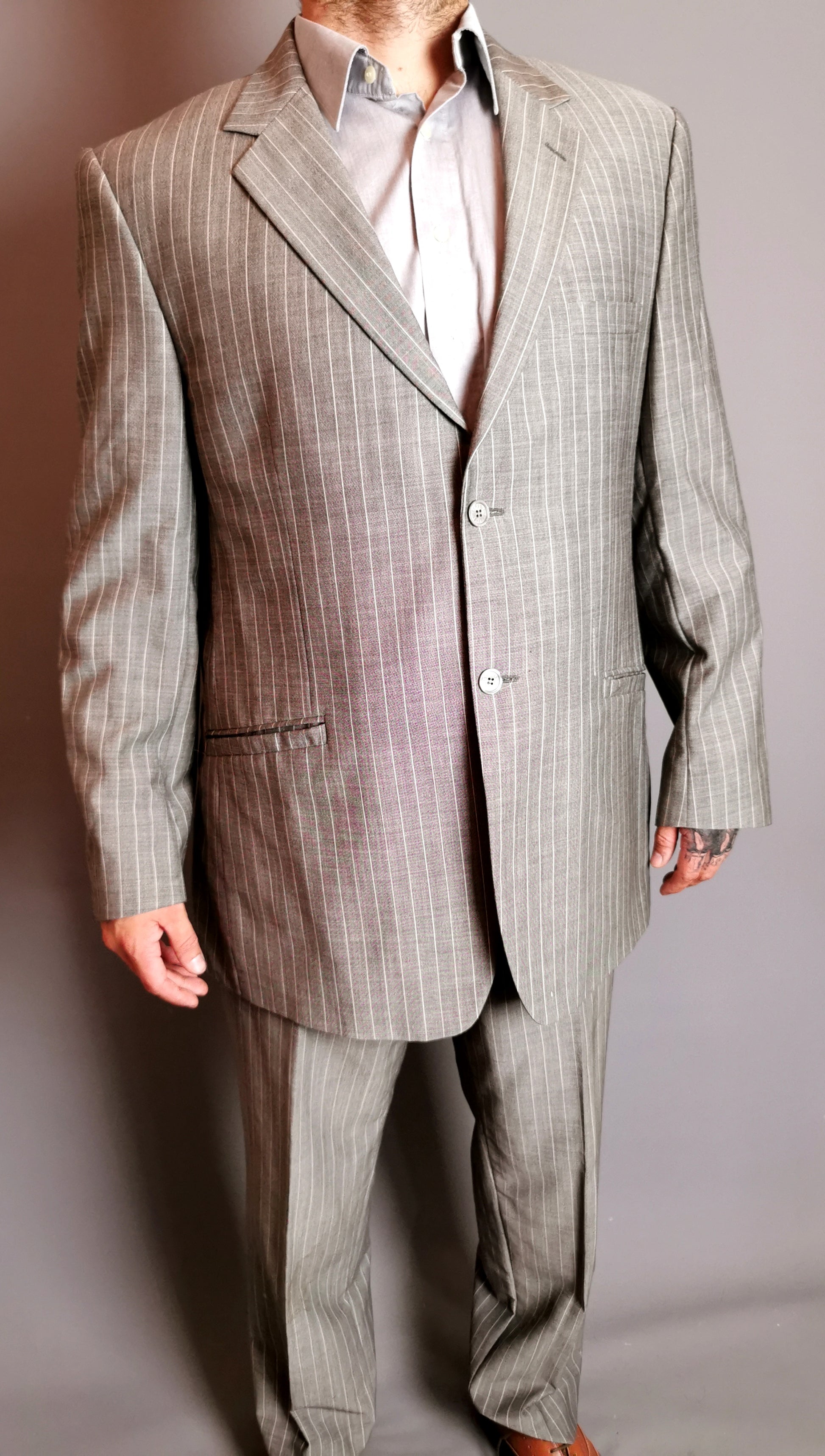 A stylish vintage Versace Classic mens grey pinstripe suit.
